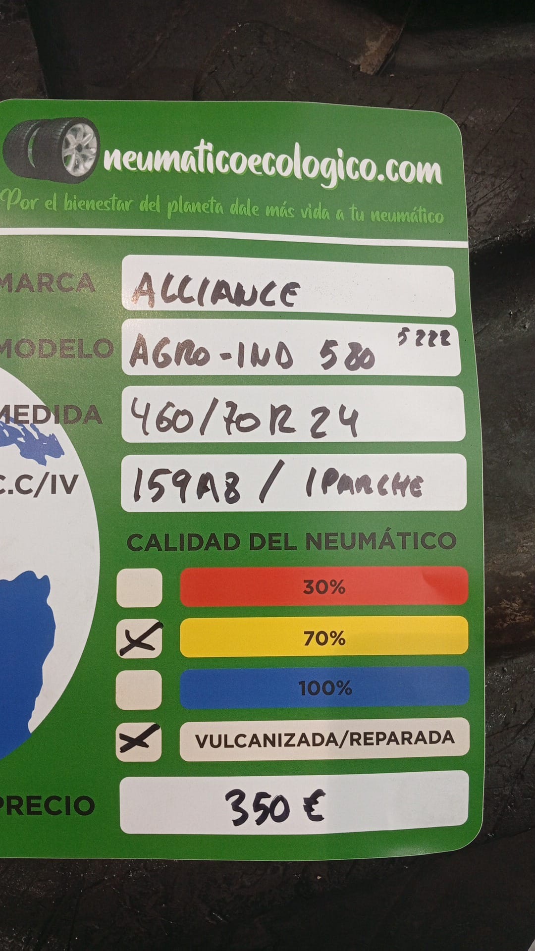 Calidad del Neumático: 70% – DOT22 – 1 PARCHE VULCANIZADA