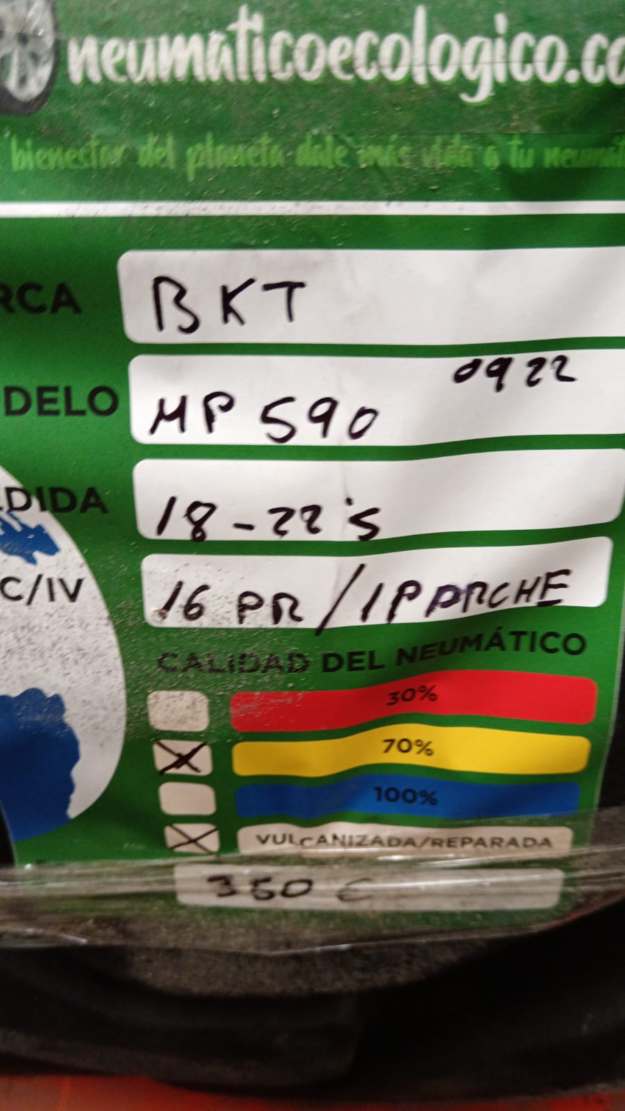 Calidad del Neumático: 70% – DOT22 – 1 PARCHE