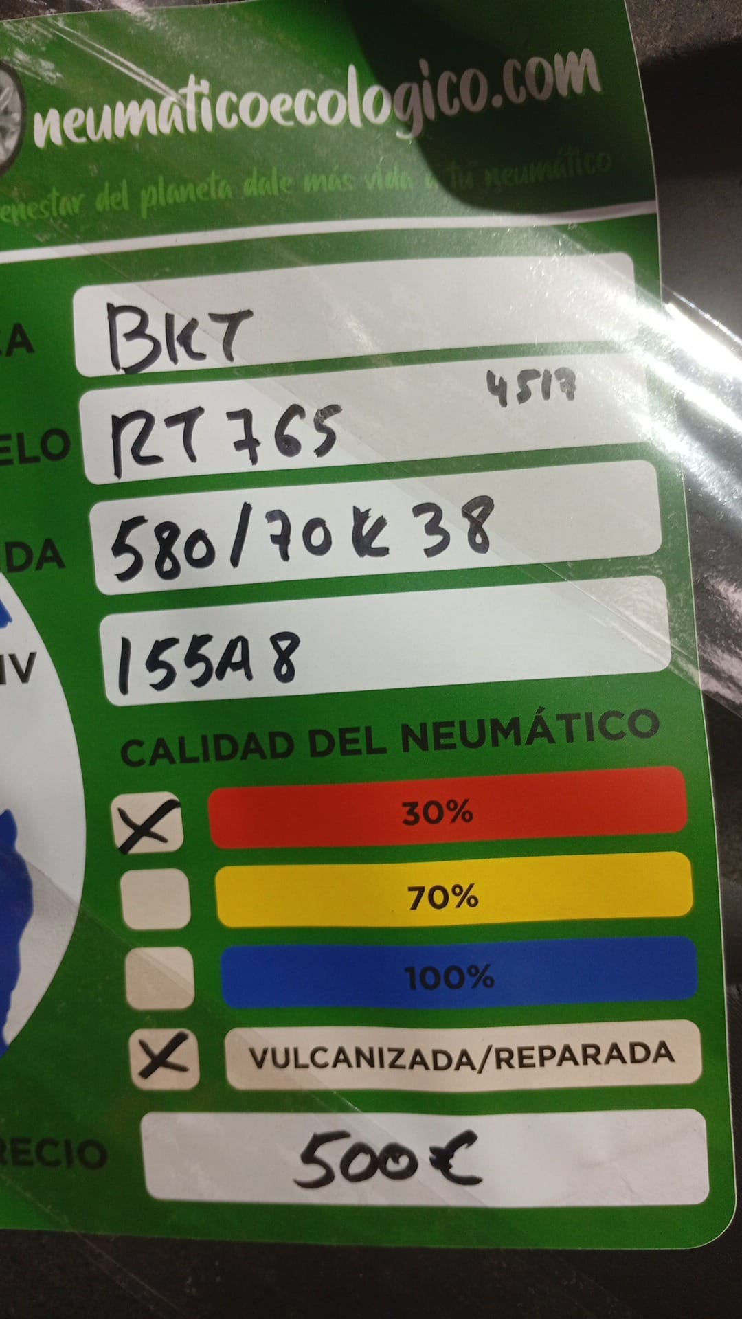 Calidad del Neumático: 30% – DOT17 – VULCANIZADA