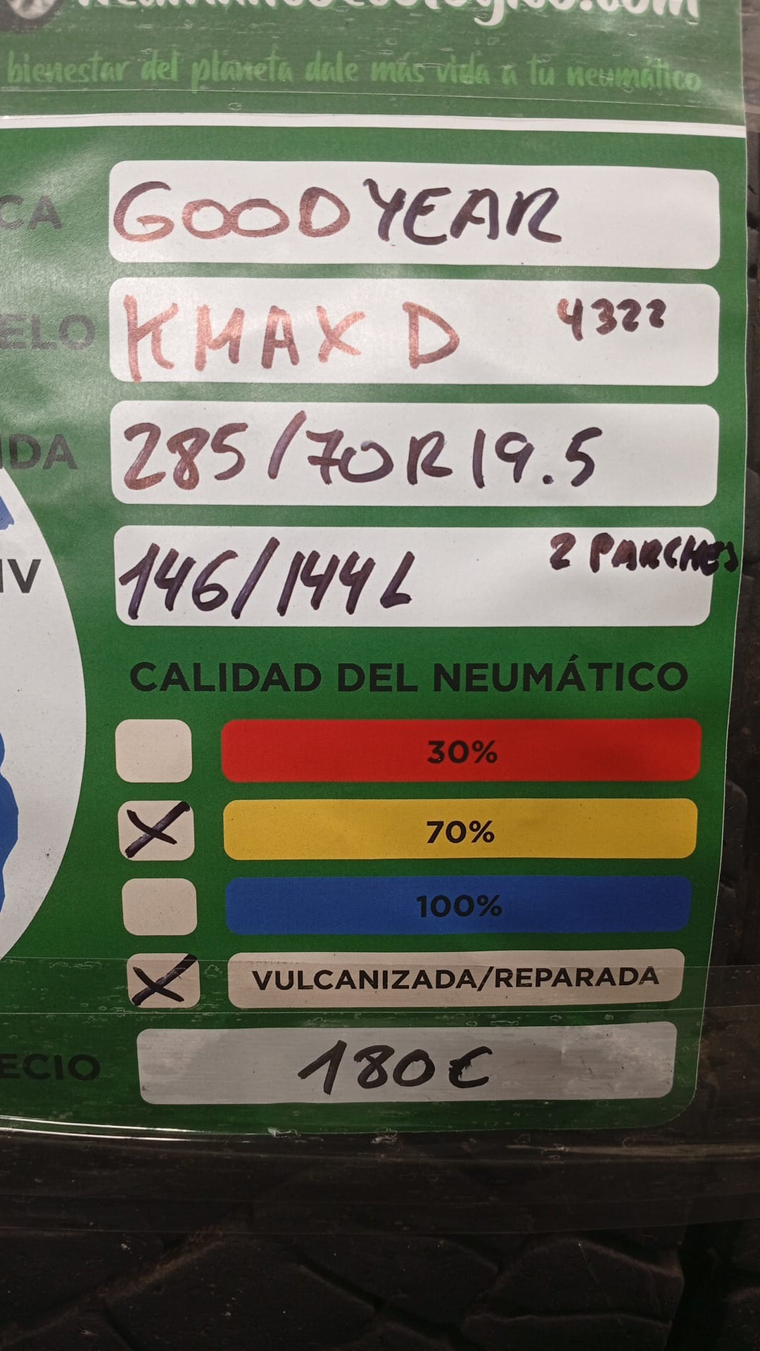 Calidad del Neumático: 70% – DOT22 – 2 PARCHES