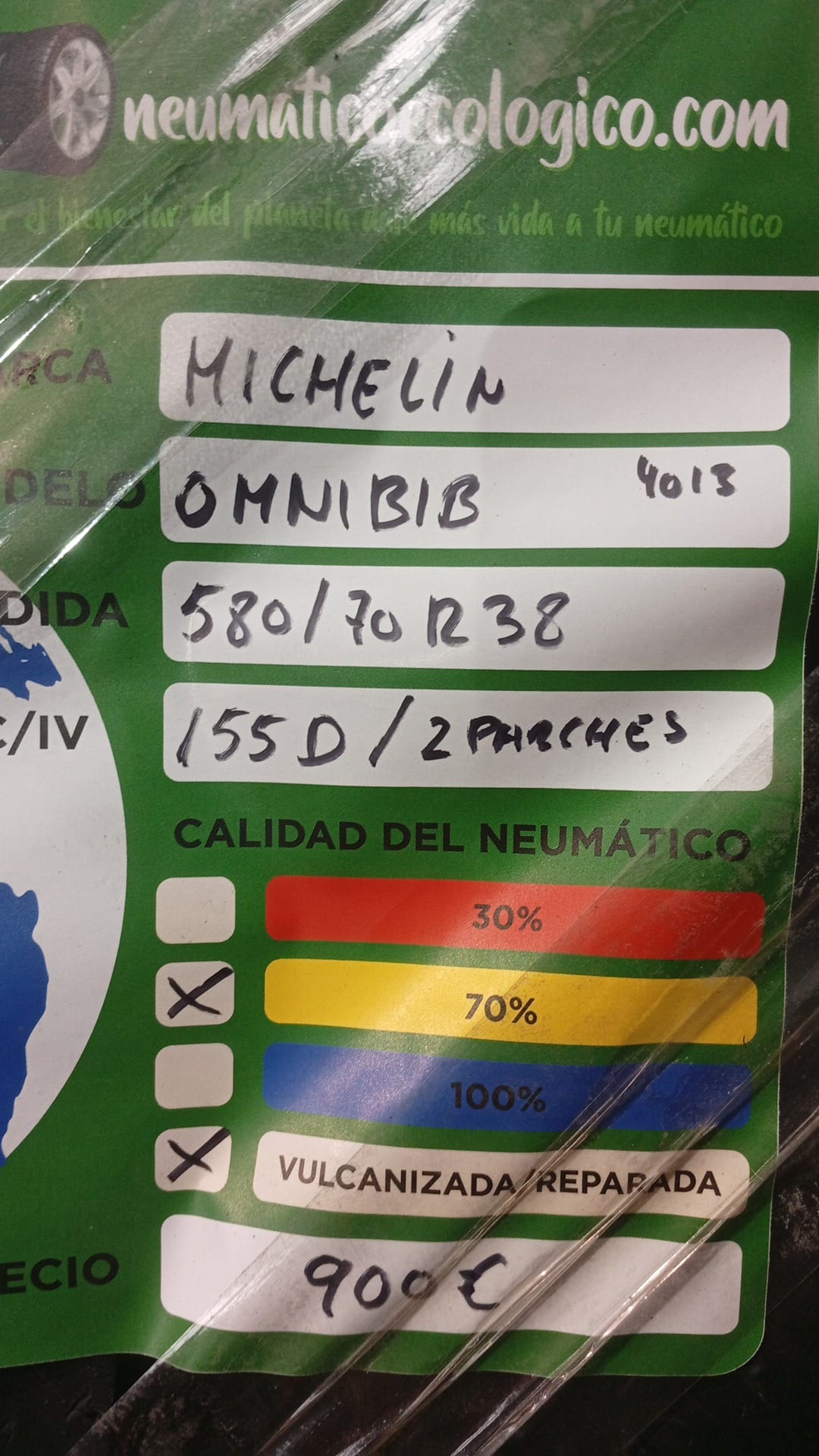 Calidad del Neumático: 70% – DOT13 – 2 PARCHES VULCANIZADA