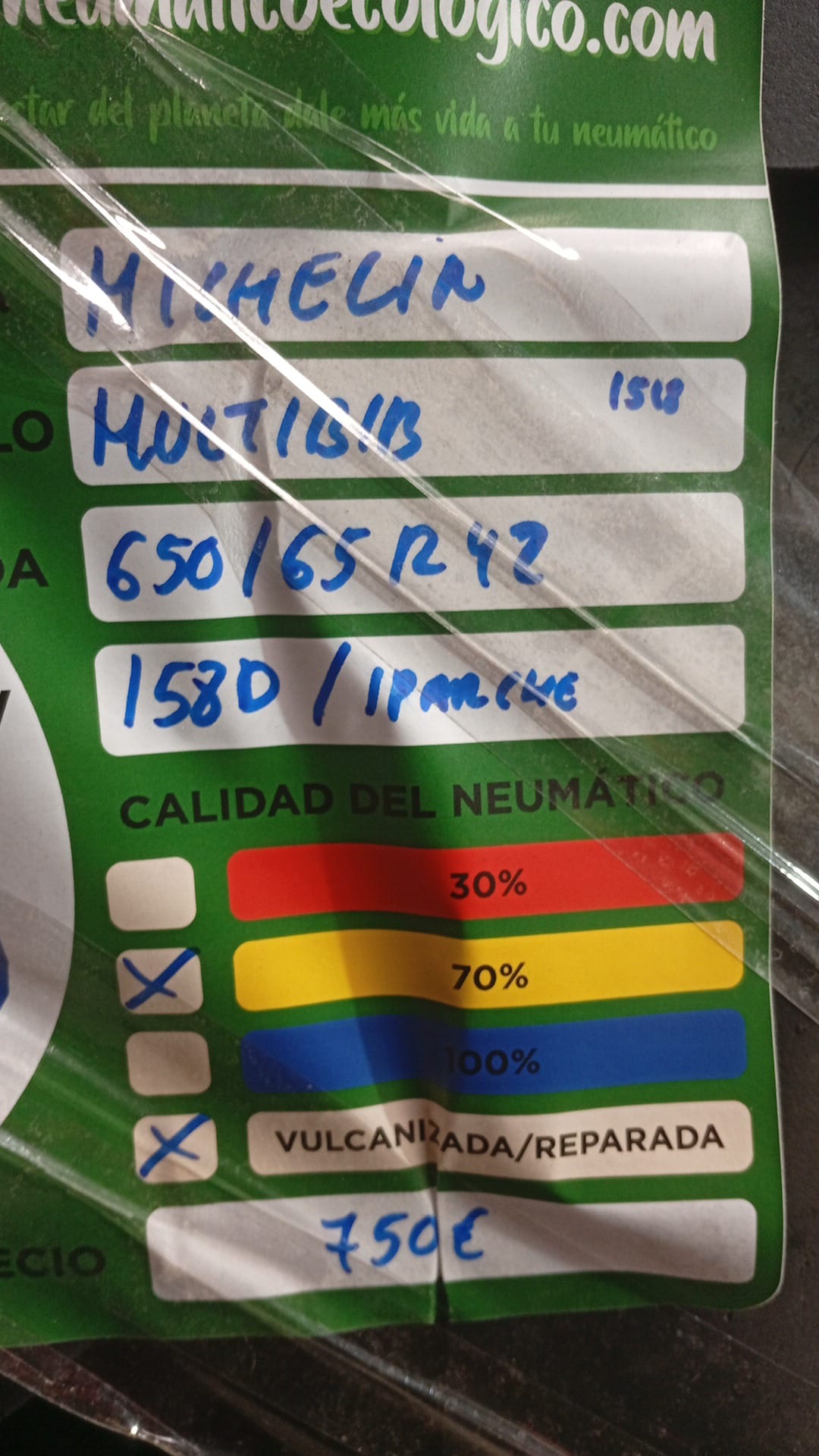 Calidad del Neumático: 70% – DOT18 – 1 PARCHE