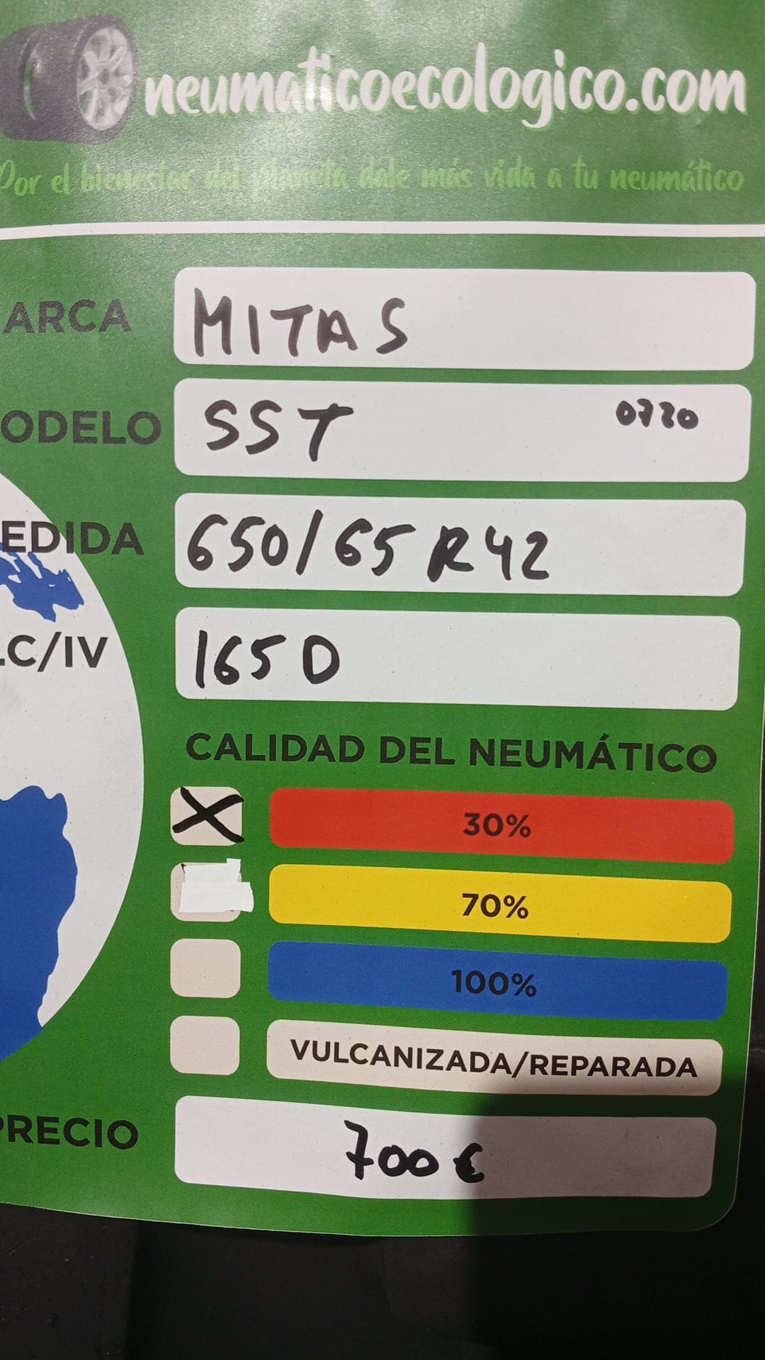 Calidad del Neumático: 30% – DOT20 – TALON DOBLADO