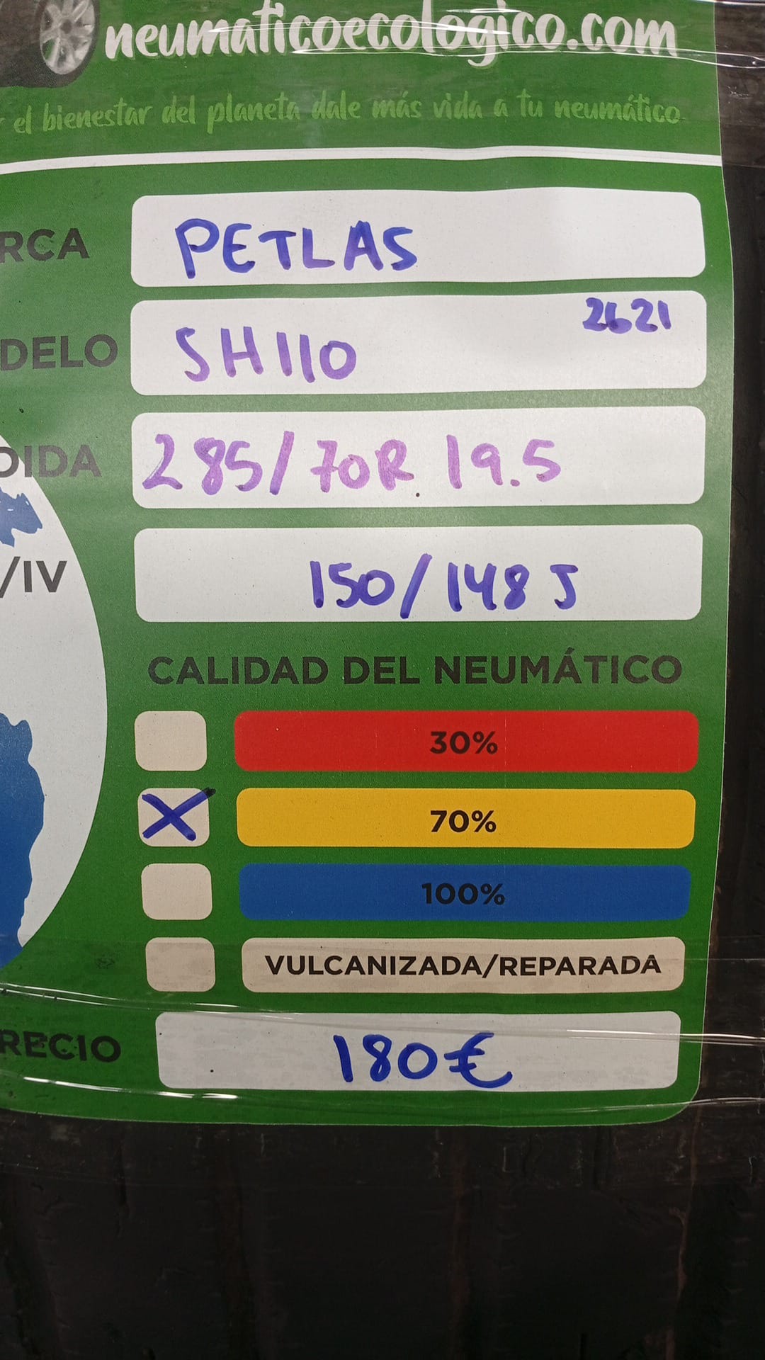 Calidad del Neumático: 70% – DOT21 – CORTE BANDA