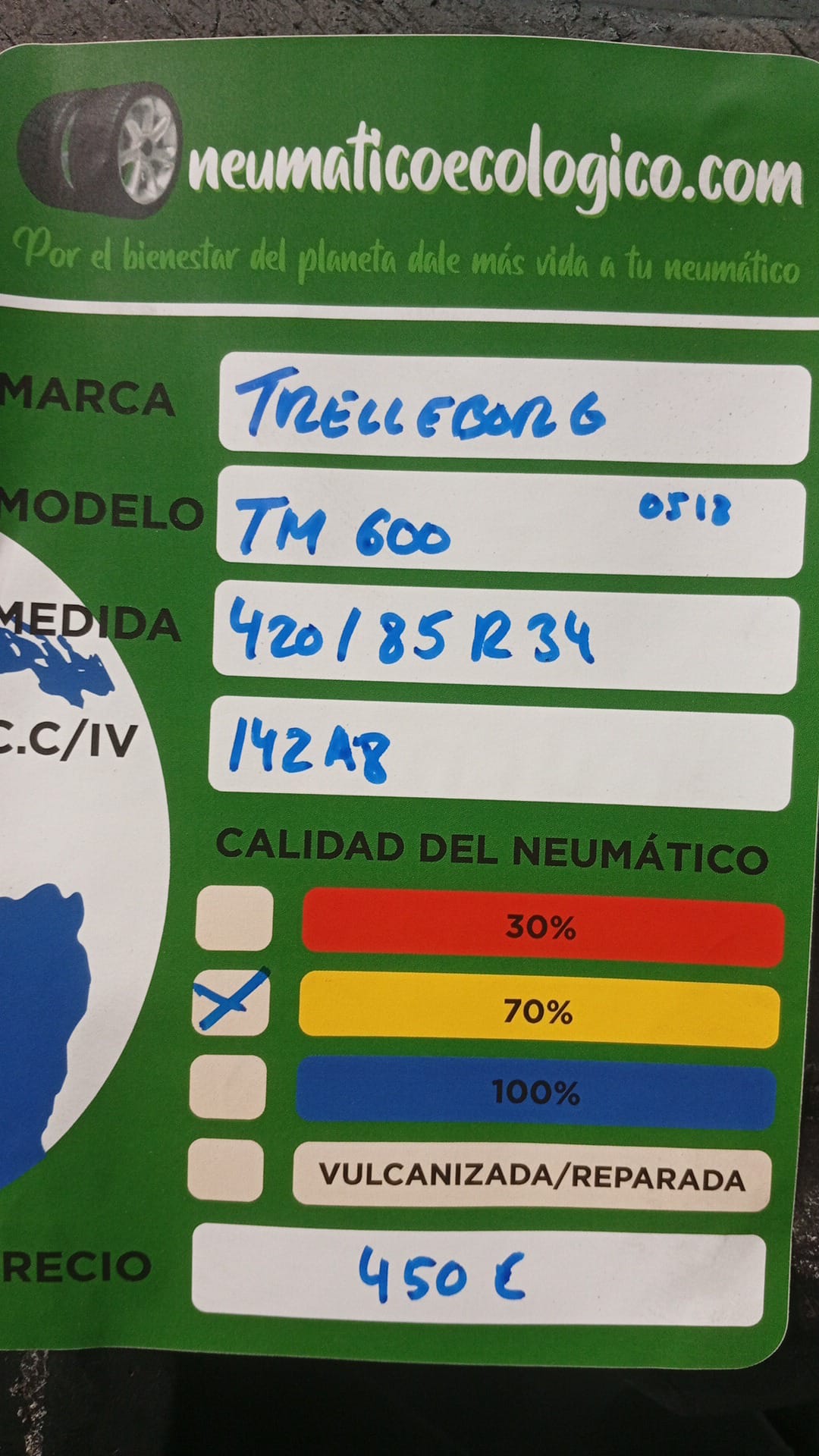 Calidad del Neumático: 70% – DOT18 – BOCADO EN TALON, Y DOBLADO