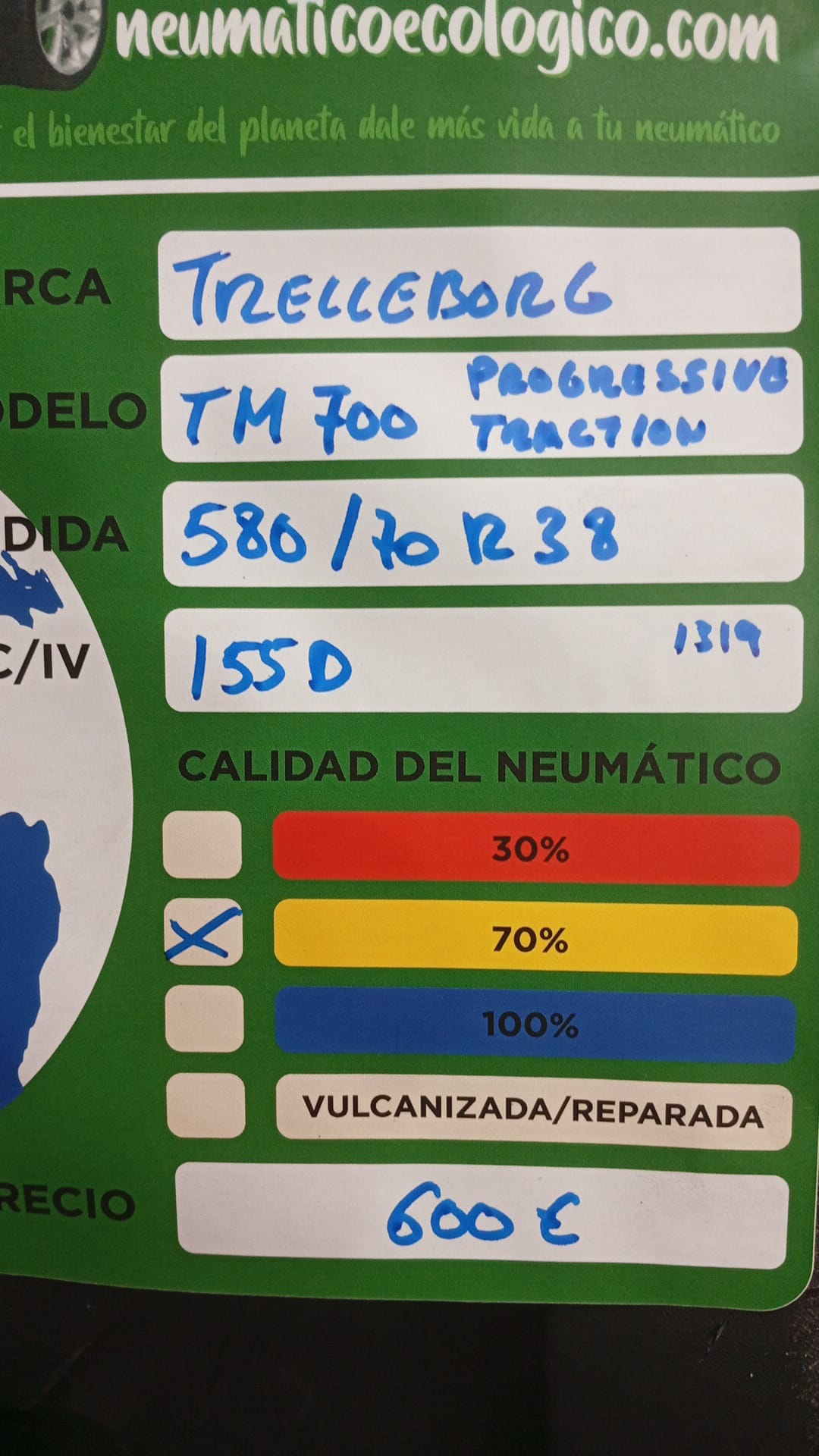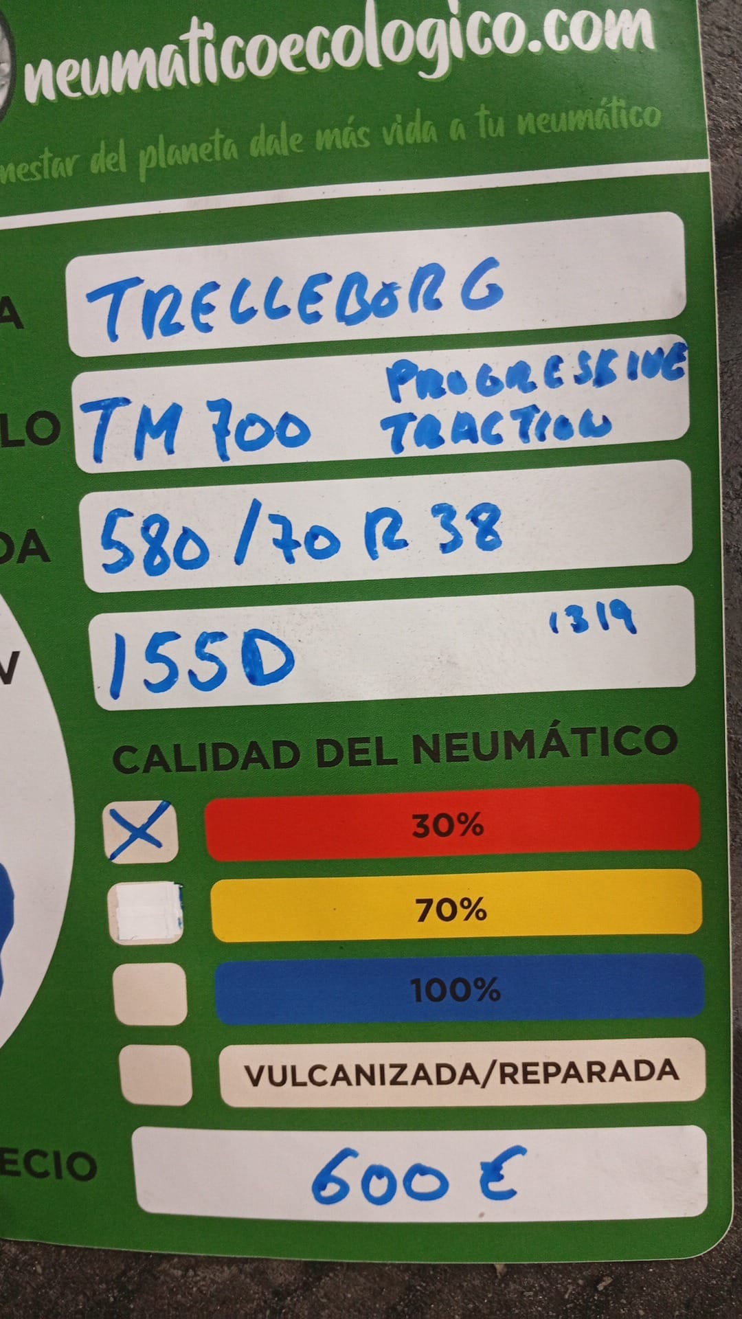 Calidad del Neumático: 30% – DOT19 – BOCADO TALONES