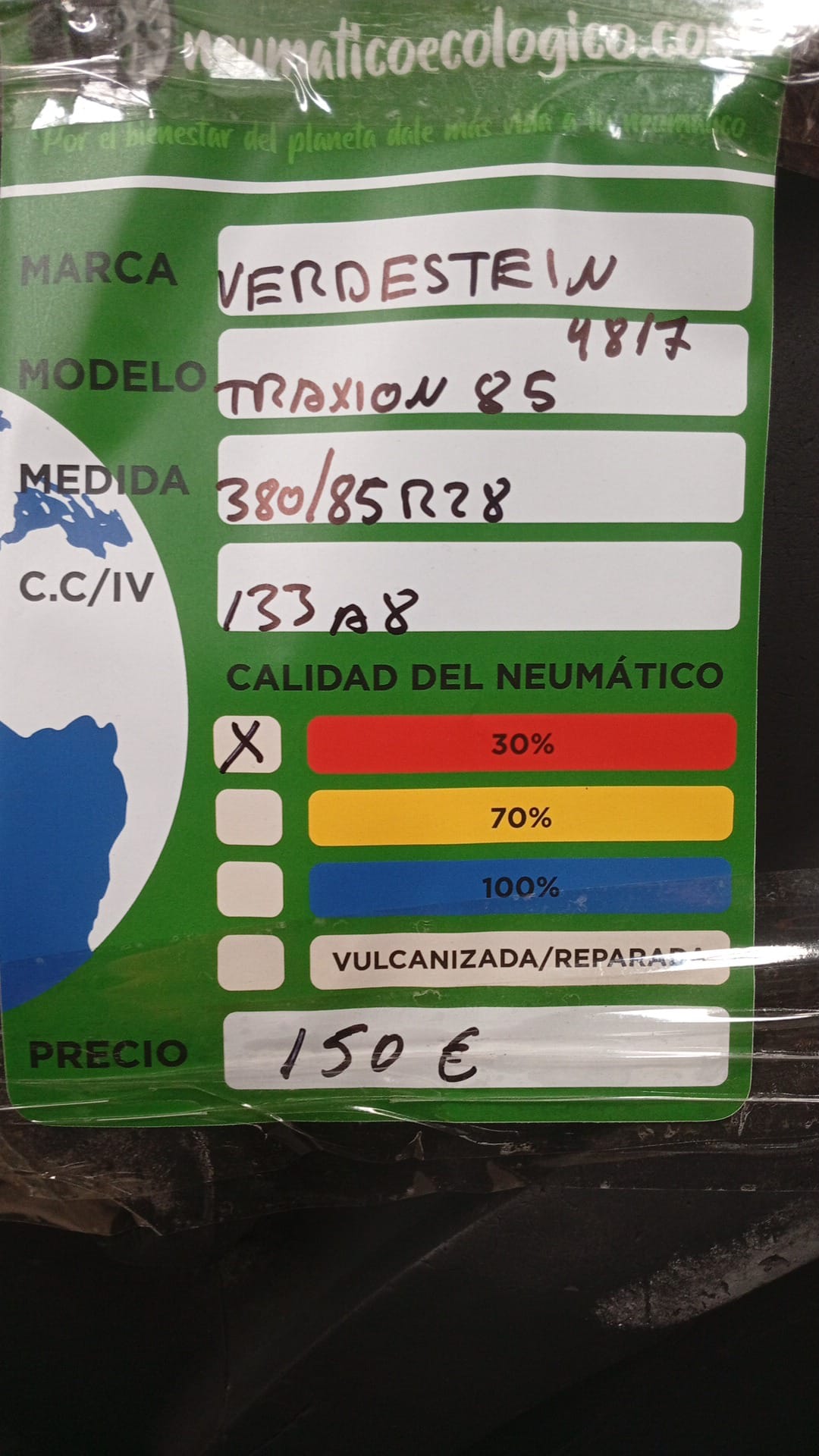 Calidad del Neumático: 30% – DOT17 – DESGASTE CENTRO DE TACO